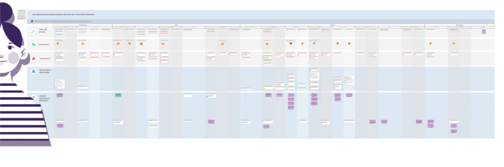 Por fim, o Matilha auxiliou na compreensão do conhecimento profundo dos usuários, criando uma jornada com as atividades listadas para cada um dos grupos arquetípicos. Em conjunto com o desenvolvimento de ações para cada um dos momentos listados, expandimos soluções, desenvolvemos novos recursos e adaptamos linguagens e fluxos.